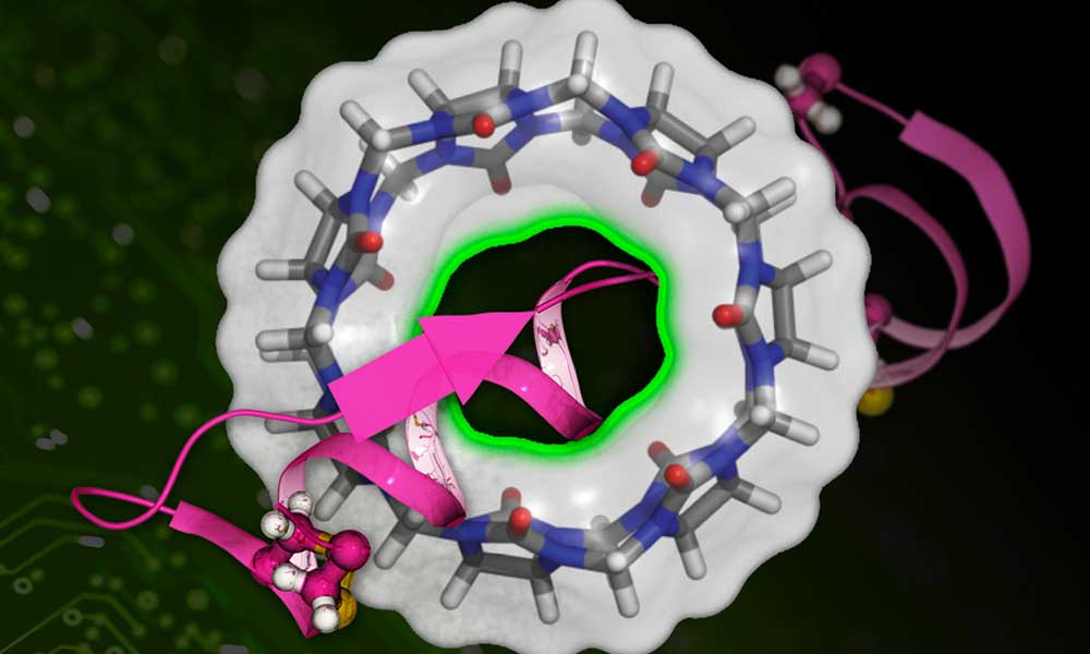 MIT researchers have developed a machine learning-based technique to more quickly calculate the binding affinity of a drug molecule (represented in pink) with a target protein (the circular structure). Credits:Image: MIT News, and circular structure courtesy of the researchers